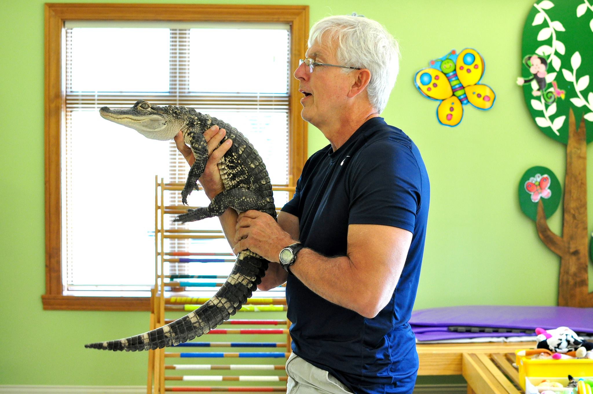 Our “Amazing 10 ” is a GREAT show! Includes a hedgehog, fuzzy animals like a chinchilla and ferret, and also reptiles like an alligator, small snake, and tortoise.